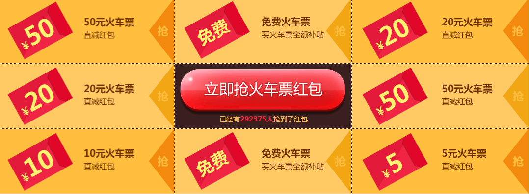5-50元火车票红包、免费火车票