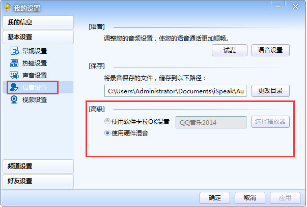 第三步:选择好硬件或软件卡拉OK混音后点击频道聊天框下方开始一展歌喉吧