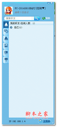 进入主界面后,在我的好友一栏里,会自动显示该局域网内所有在线好友,选择某一好友便可直接与该好友进行通讯聊天,方便统一和管理。