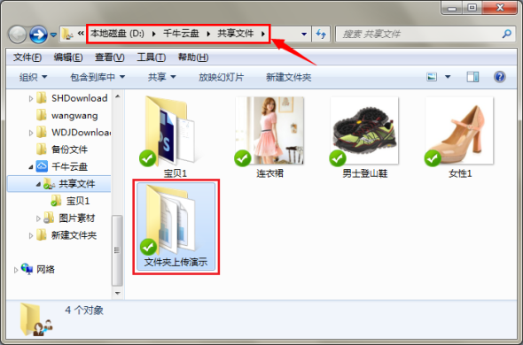 第二步:将要上传的文件夹拖拽或粘贴到同步目录即可