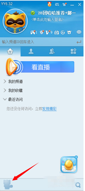 步骤二:登陆yy账号后,在yy界面的左下端有个yy图标,点击它。