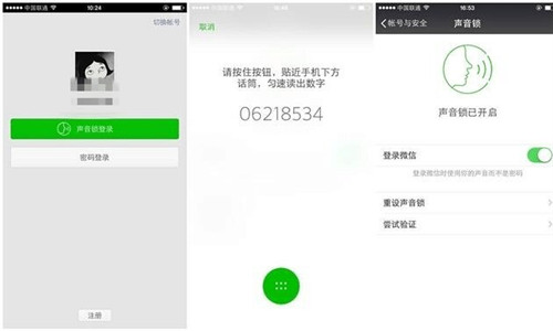 微信iOS最新版增加了声音登录功能,微信团队将其命名为“声音锁”。想要使用的用户,需要在设置里开启该功能,按系统要求读出随机数字若干次,在微信提取你的声音特征参数后,退出再登录。念出相应数字就能解锁登录。不过,目前该功能仅对部分用户开发。