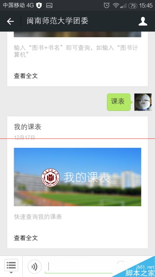 说明:如果是订阅号没有菜单栏的微信公众号,到这一步就可以使用了,直接微信回复关键词即可实现校园查询功能。