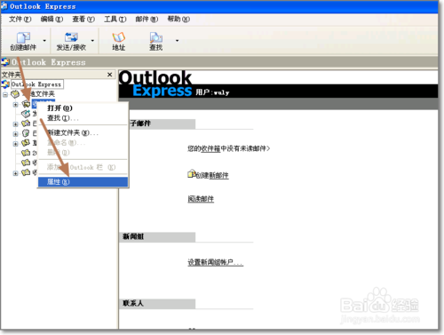 1、首先需要找到超过2G的收件箱存储文件路径,点击收件箱右键属性。