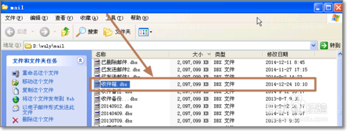 10、现在收件箱变成了20141224.dbx可以将上一个步骤的20141224.dbx111文件删除。