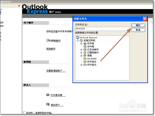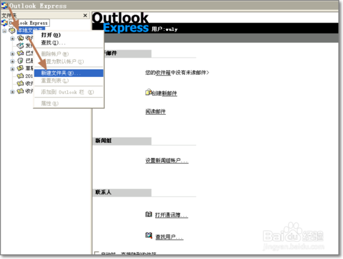 5、现在回到OutLook邮箱界面,新建立一个文件夹,将用来的备份替换满2G的收件箱。