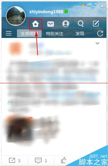 1、小编也是刚刚使用微博桌面2015,对于很多功能也还是刚刚了解,点击上方的小房子图标,进入微博主页。