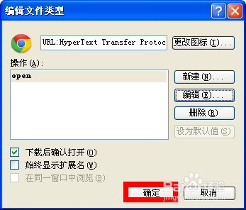 6、点击确定后,返回到“编辑文件类型”界面,再点击确定。