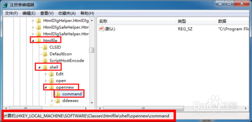 [HKEY_LOCAL_MACHINE \Software \Calsses\htmlfile \shell \opennew \command]