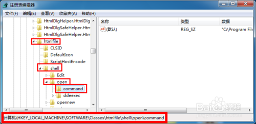 [HKEY_LOCAL_MACHINE \Software \Calsses\htmlfile \shell \open \command]