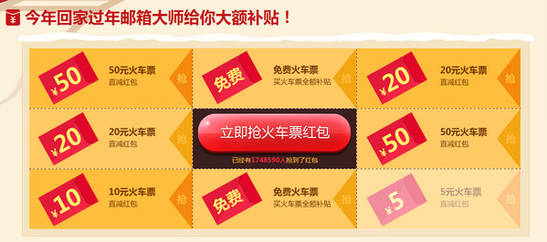 3.进入邮箱大师抢红包网站:邮箱大师抢春运火车票红包