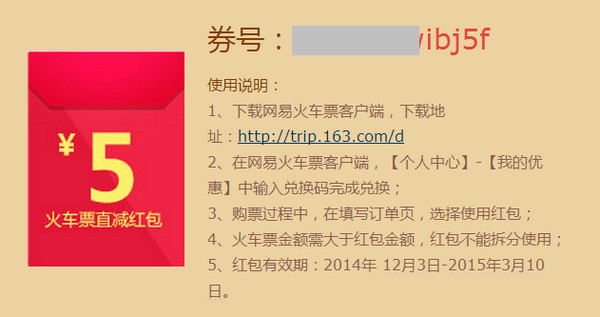 3.如果之前在网易火车票客户端抢过红包的,将无法使用本次红包