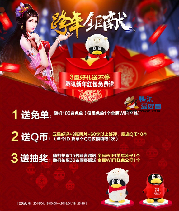 提示:前500名还额外送10QB、腾讯红包,还有机会免单;抽奖奖品有QQ公仔。五星好评+3张照片晒单+60字评论=送10QB,具体咨询旺旺!详情见活动地址!