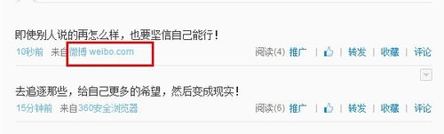 6、再发布新浪微博时那个微博小尾巴就是显示来自微博了,就是没有设置的情况下: