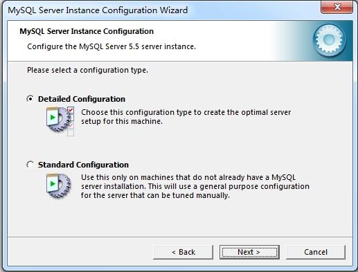 2)如果选择了Re-configure Instance选项,可以选择你想要配置的安装类型。已有的my.ini文件重新命名为mytimestamp.ini.bak,其中timestamp是 my.ini文件创建是的日期和时间。