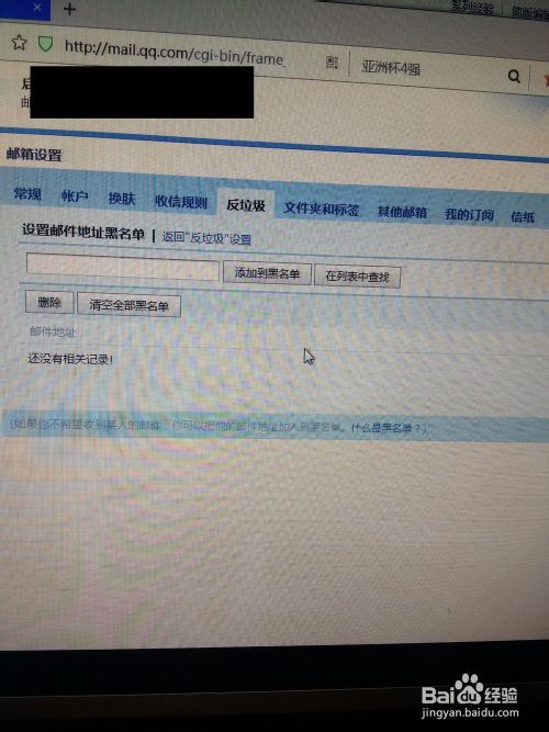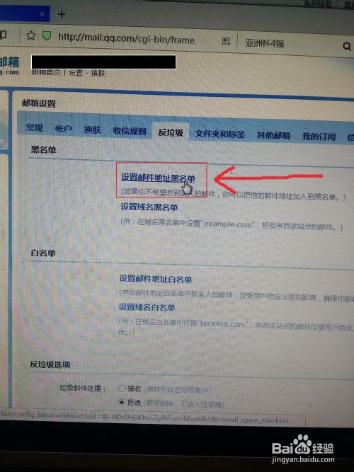 3.在点击“设置邮件地址黑名单”之后输入地址。
