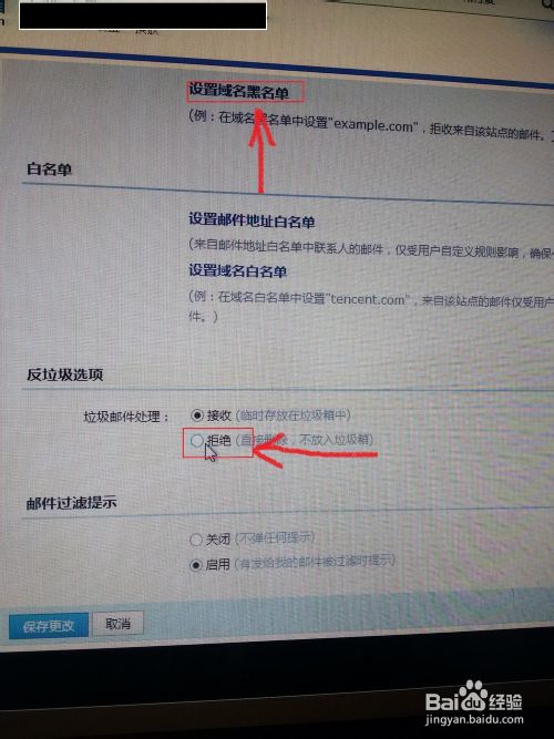 方法三:在方法二得到基础上,最下方的“反垃圾选项”点击'拒收“也是可行的。