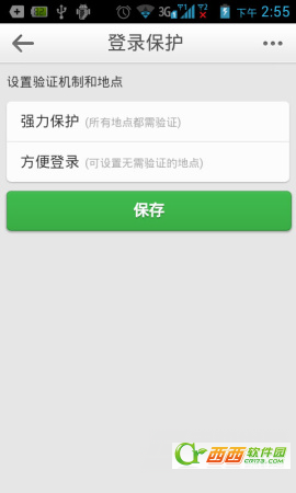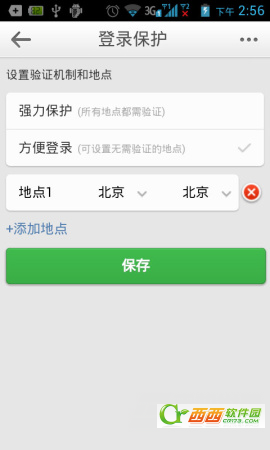 2)在登录保护中我们可以选择强力保护和方便登录保护。强力保护是所有的地点都需验证;方便登录是可以设置无需登验证的地点,非常人性化的一种登录保护设置。(如下图所示)
