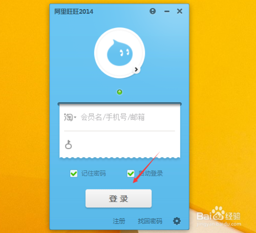 2、在阿里旺旺登录界面上,输入淘宝帐号和密码,然后点击登录,如下图所示。