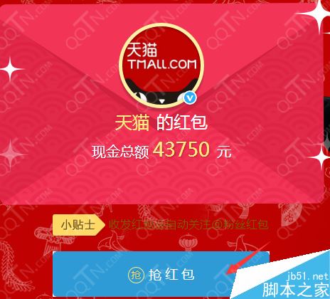 1、用户可在红包主人微博主页及红包微博中任意入口点击“抢红包”按钮,即可进入红包页面抽取红包。
