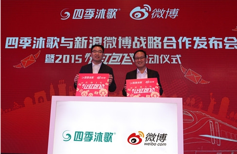 目前,微博上有80多万家企业,每年都有几万家企业参与让红包飞活动,微博会选择跟活动主题和玩法最相近的企业作为主要合作方。与四季沐歌的合作,主要看重的就是四季沐歌在线下市场的覆盖和微博线上覆盖能够形成优势互补。此外,微博在不断丰富红包的玩法,除了现金红包,今年将首次推出联名红包的机制,企业可以跟明星一起发送红包。