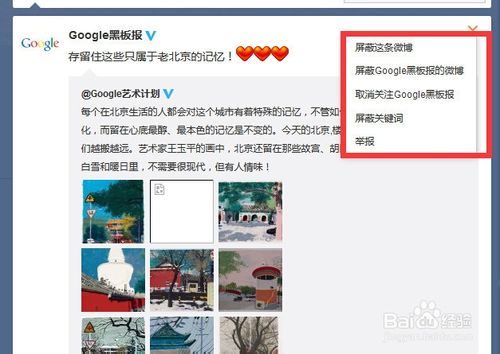 另外,还有一种简便的方法。当用户的微博出现在你的首页的时候,点击微博右侧的倒三角形。就可以屏蔽了。