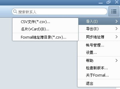 1、打开foxmail的联系人界面,在左下角第二个。然后打开foxmail右上方的菜单栏,选择“导入”,然后再选择你要导入文件的格式。由于刚才导出的文件是Foxmail的csv格式,所以这里我直接选择第三个