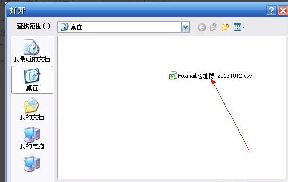 3、找到备份文件所存储的位置,刚才我把foxmail的通讯录文件放在桌面了,现在直接在桌面找到该文件。