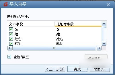 4、这个时候导入向导会提示你是否要导入那些内容到foxmail的通讯录里面,建议直接选全选,联系人的所有信息都会导入进去