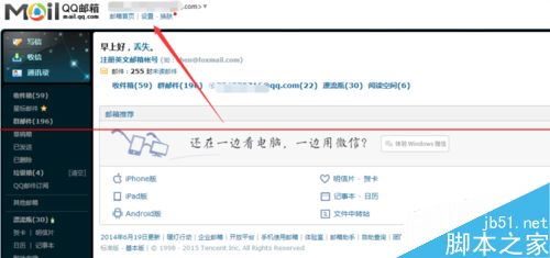 7、在此邮箱界面,就可以收发邮件了,左侧会有自己的绑定的邮箱帐号,如图所示。