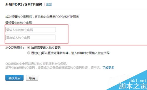 4、在此页面输入独立密码,此密码建议不要和邮箱登录密码一致,独立密码设置完成后,需要验证一次,如图所示。