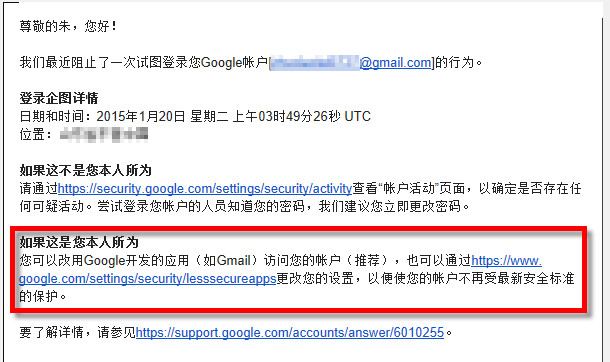 12、打开此邮件,原来是gmail做了阻拦,为了安全,按提示点击下方的链接。