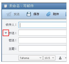 1、在foxmail写邮件界面直接可以看到邮件抄送的填写框,点击抄送旁边的三角形即可显示暗送的填写入口