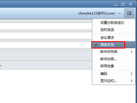 1、首先编辑好需要发送的新邮件,附带好邮件内容和收件人信息等然后点击邮件对话框右上方菜单选项,如图选择”阅读收条”