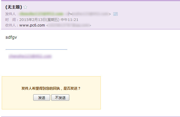 3、发送邮件之后,收到的邮件打开会有一个提示是不是要发送回执