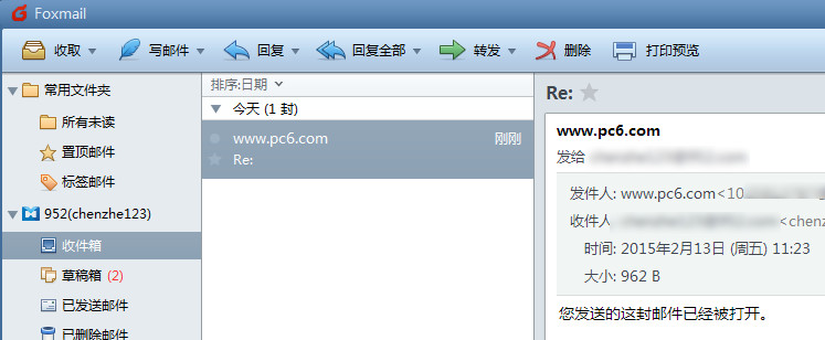 收件方要求阅读收条,则会收到相应的“收条:邮件主题”表明对方已经点击阅读了该信件