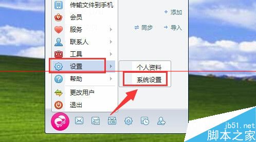 4、然后在主菜单弹出来的选项菜单中,点击”设置“,然后再选择”系统设置“。(如下图)