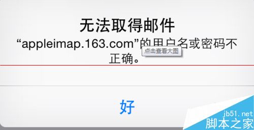 登陆163邮箱时,问题提示:无法取得邮件,“appleimap.163.com”的用户名或密码不正确