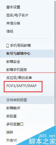 2、单击“邮箱中心”,此时会看到左侧有一项 POP3/SMTP/IMAP,,单击这一项,