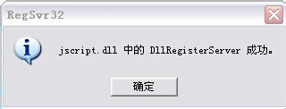 在出现的运行窗口中输入“regsvr32 jscript.dll”然后点“确定”按钮,这时会出现如下窗口,证明运行完毕,点“确定”按钮。