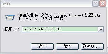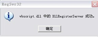 重复第二步,点击“开始”,然后点“运行”,再次在运行窗口中输入,输入“regsvr32 vbscript.dll”后点“确定”。出现如下图所示窗口,证明运行完毕,点“确定”按钮。
