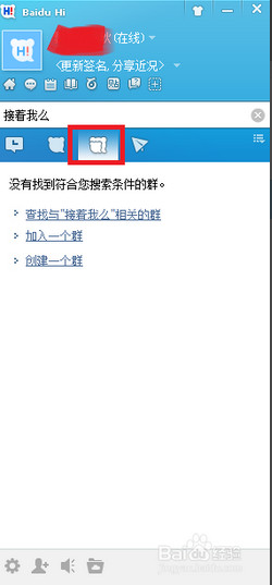 2、登录进入百度hi的界面后,在界面上找到群这个选项卡,这里可以创建和加入群,如图所示