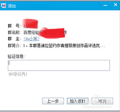 5、百度Hi根据你的输入自行查找相关信息,查询出来的信息显示在界面上,你可以核对信息确认是否正确,正确就输入验证信息单击加入