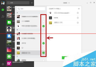 第五步:也可以点击联系人右侧的小圆圈进行快速的选择。
