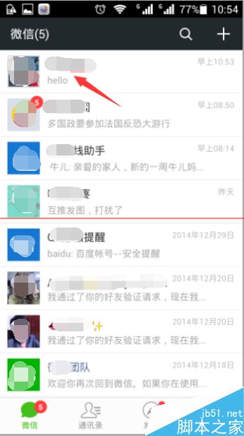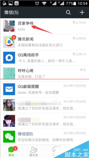 7、再回到微信的聊天主页面,你会发现刚才的未命名的群聊已经有了新的名字,如图所示。