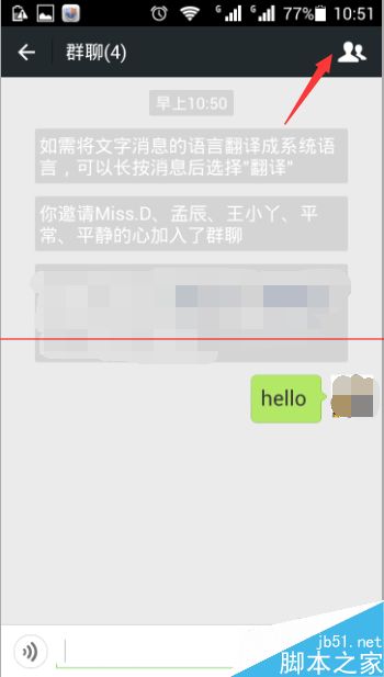 2、点击进入以后,需要点击右上角的两个头像的图标,即聊天信息的图标,如图所示。