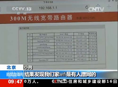用户发现家中无故被蹭网
