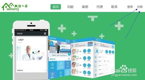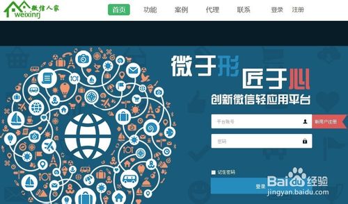 第一步,搜索weixinrj首页,打开网站点击右上角的注册,创建一个帐号并且登录。