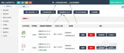 第二步,点击-->填加微信公众号,进行绑定。第一次操作不懂的话点击上面的教程,里面有详细的步骤。
