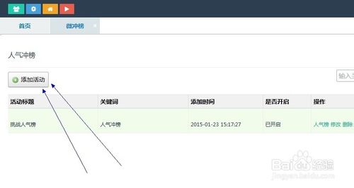 第三步,点击左侧的--高级功能--微冲榜,进入制作页面,点击--添加活动,会出现具体的填写项。